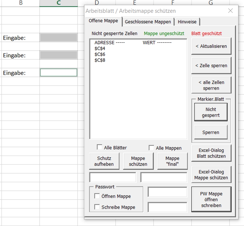 o Mappen/Blätter schützen - mit und ohne Passwort